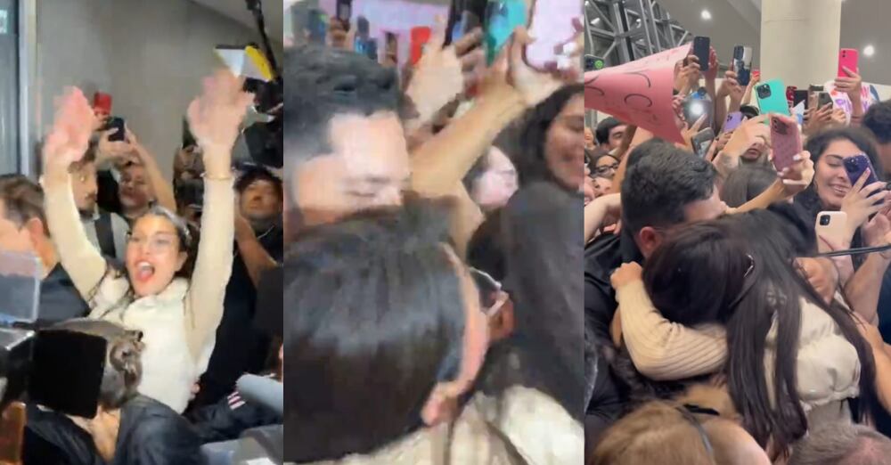 Eskarcita llegó a donde estaba su madre y su padre, les dio un fuerte y emotivo abrazo mientras estaban rodeados por una gran multitud de fanáticos cuyos celulares y gritos ambientaron la escena.