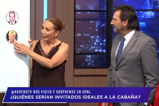 Tras su reflexión, Karen fue invitada por Fuenzalida a pensar en un episodio de ficción de “La Cabaña”, donde ella debía elegir de entre varios rostros a los cuatro que más le gustaría tener en su programa.