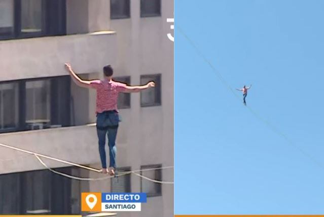 Si bien, el desafío consistía en cruzar una extensión de 270 metros, desde el extremo de un edificio a otro, el artista se dio tiempo para ir y volver, sentarse sobre la cuerda e incluso recostarse, como tomando una siesta.