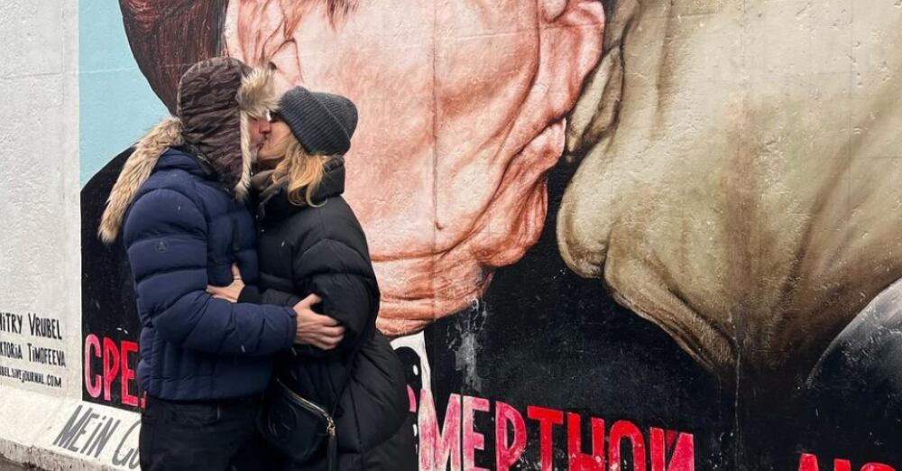 Mientras que hoy día, la animadora de “Gran Hermano” publicó una fotografía con su marido en donde se están besando en el Muro de Berlín, delante de la icónica pintura del beso de Brezhnev (ex líder soviético) y Honecker (ex primer ministro Alemán).