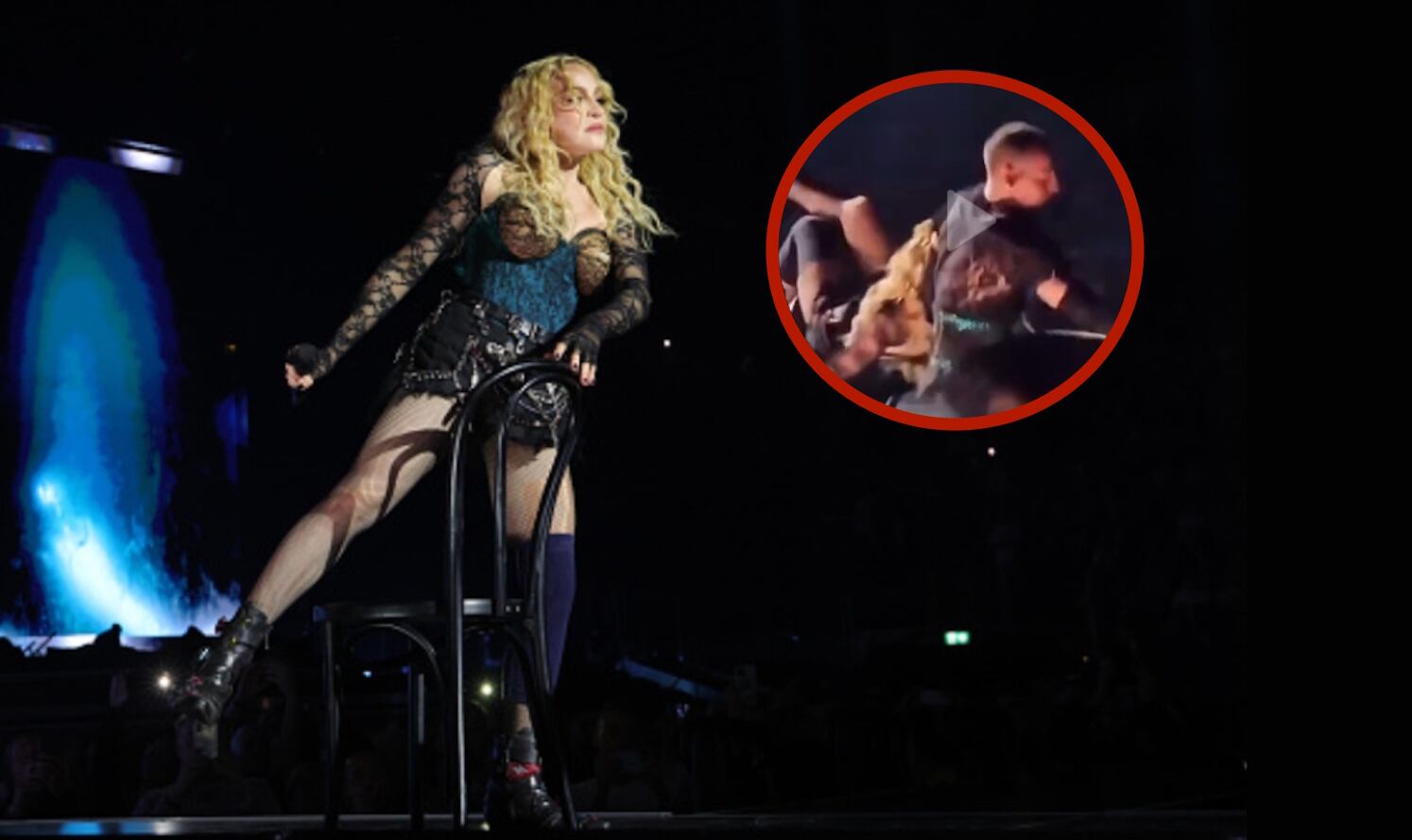 La popular cantante, de 65 años, recorre el mundo con una gira intensa que ha tenido sus claroscuros, y uno de ellos ocurrió este domingo por la noche en la Arena de Seattle: Madonna sufrió un percance en el escenario que la hizo caer hacia atrás en medio del espectáculo.