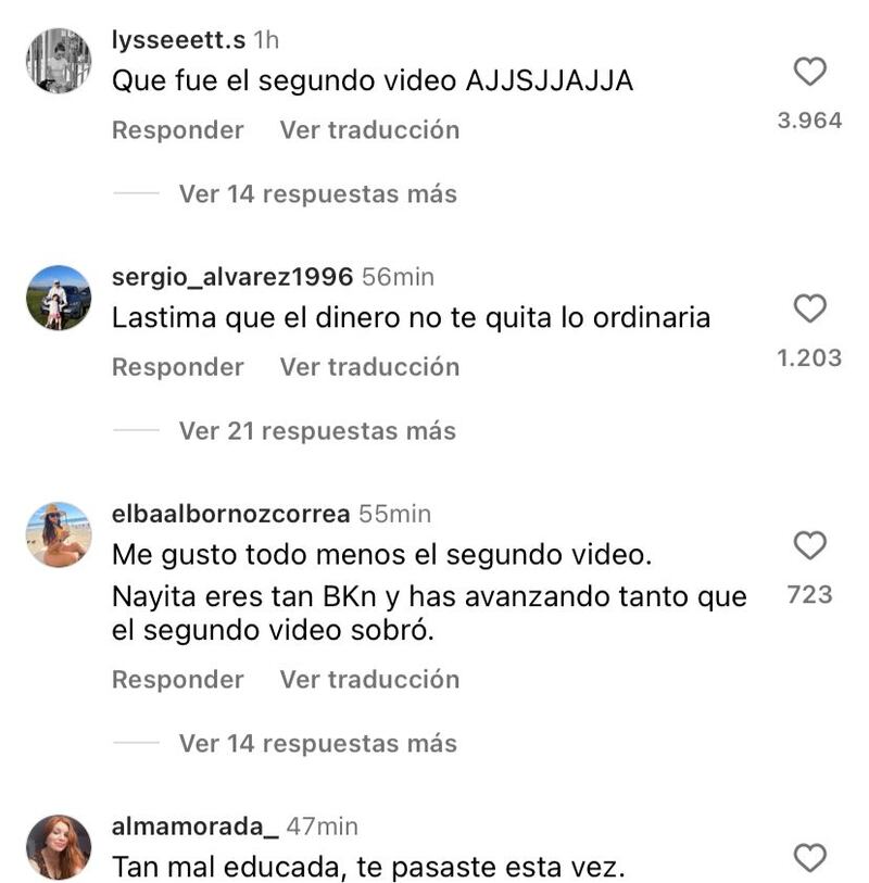 Usuarios de redes sociales la trataron de “vulgar”, “ordinaria” y “chula”, acusándola de haber arruinado la fotografía. “Lástima que el dinero no te quita lo ordinaria”, “Cagast… la segunda foto con tu ordinariez” y “Has avanzado tanto que el segundo video sobró”, fueron solo algunos de los comentarios que se leen en el post.
