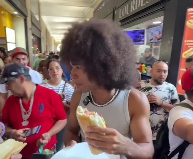 Pollo Castillo nuevamente fue anfitrión y esta vez repitió el tour por el centro de Santiago para demostrarle lo más típico de la comida local. El completo fue infaltable y el famoso influencer no se pudo resistió a probarlo.