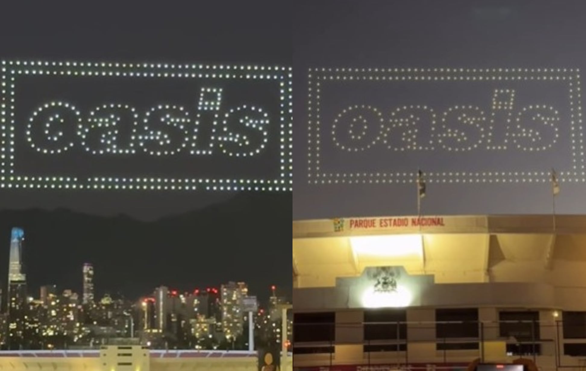 La noche de este martes, Ñuñoa vivió un adelanto del evento musical más esperado del año. Exactamente a las 21:00 horas, un espectacular show de drones se elevó sobre el Estadio Nacional Julio Martínez, formando el logo de Oasis en el cielo santiaguino. El espectáculo, que sorprendió a vecinos, transeúntes y fanáticos, marcó el inicio de la cuenta regresiva para el regreso de la banda británica a Chile.