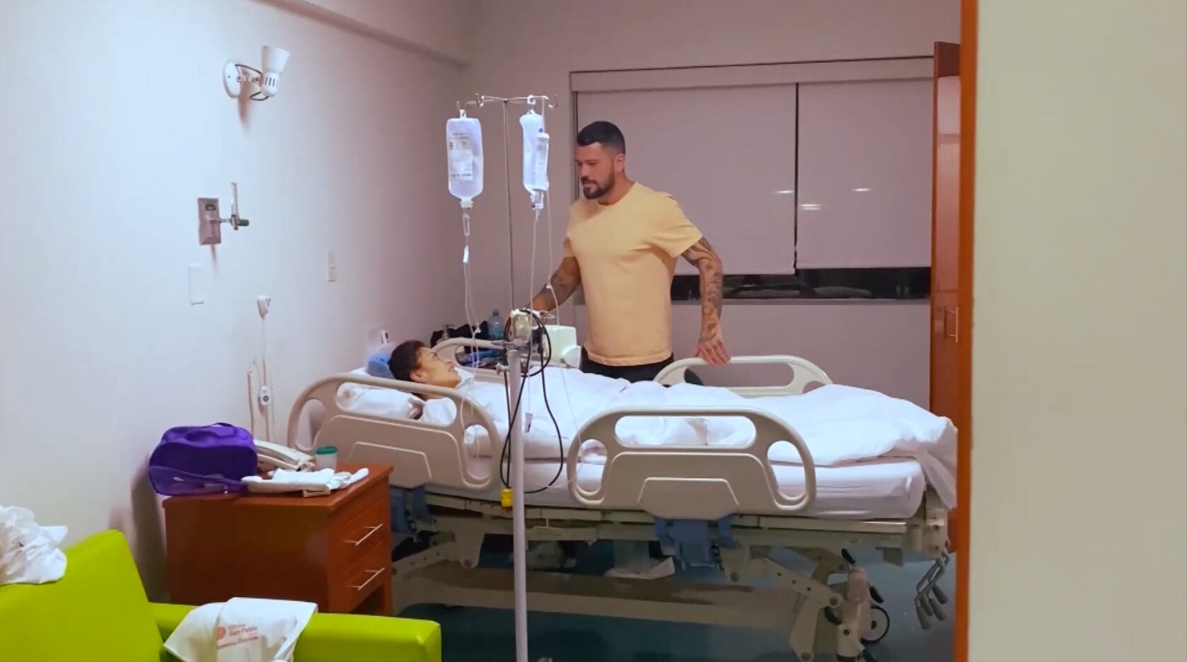 Las imágenes emitidas por el programa lo muestran tomándole la cabeza y acompañándola mientras el equipo médico ajustaba suero y preparaba el protocolo de intervención.