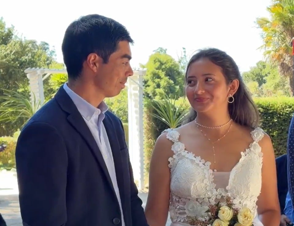 En la capilla exterior del recinto, rodeados de naturaleza y acompañados por cerca de 30 invitados, Sebastián Ríos y Patricia Godoy contrajeron matrimonio civil, dando un nuevo comienzo a una historia que había quedado en pausa luego de perder su hogar, y el de sus familias, a causa del fuego.