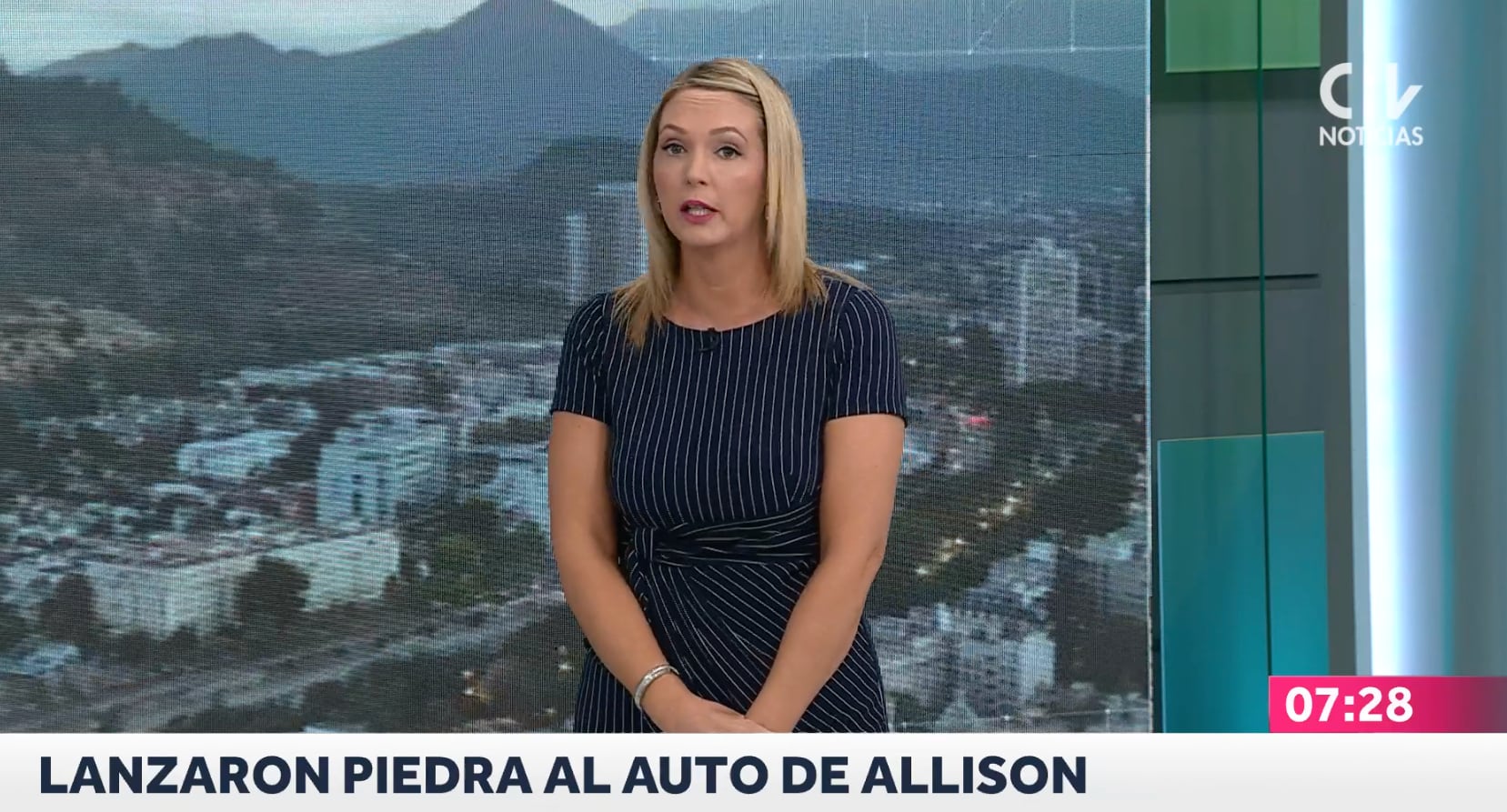 “Me acaba de llegar un camote, una piedra al auto camino al canal”, fue lo que comenzó diciendo la meteoróloga Allison Göhler al comenzar su reporte del tiempo durante la mañana de este jueves 5 de marzo en las noticias de Chilevisión, al pedir un momento para advertir a los automovilistas que transitan por la Autopista Central que tengan cuidado.