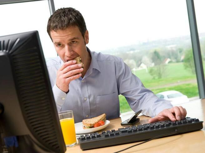 Si comemos en el trabajo lo hacemos en 5 minutos sin quitar la vista del computador y tal vez el almuerzo sea un sándwich o unas galletas. Si comemos en la casa lo hacemos rápidamente para luego, con la velocidad de flash, lavar los platos, arreglar la cocina y volver a las actividades.