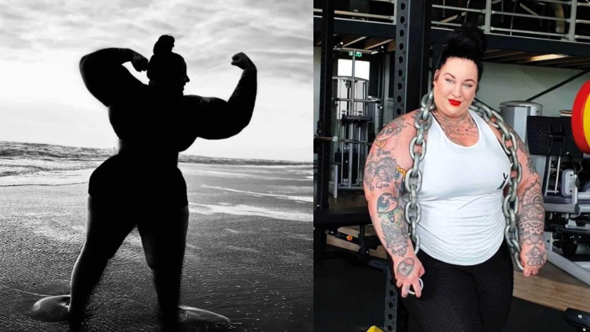En redes sociales, la joven deportista muestra con orgullo sus bíceps, que aproximadamente ascienden a los 60 centímetros cada uno, superando la medida al reconocido Arnold Schwarzenegger.