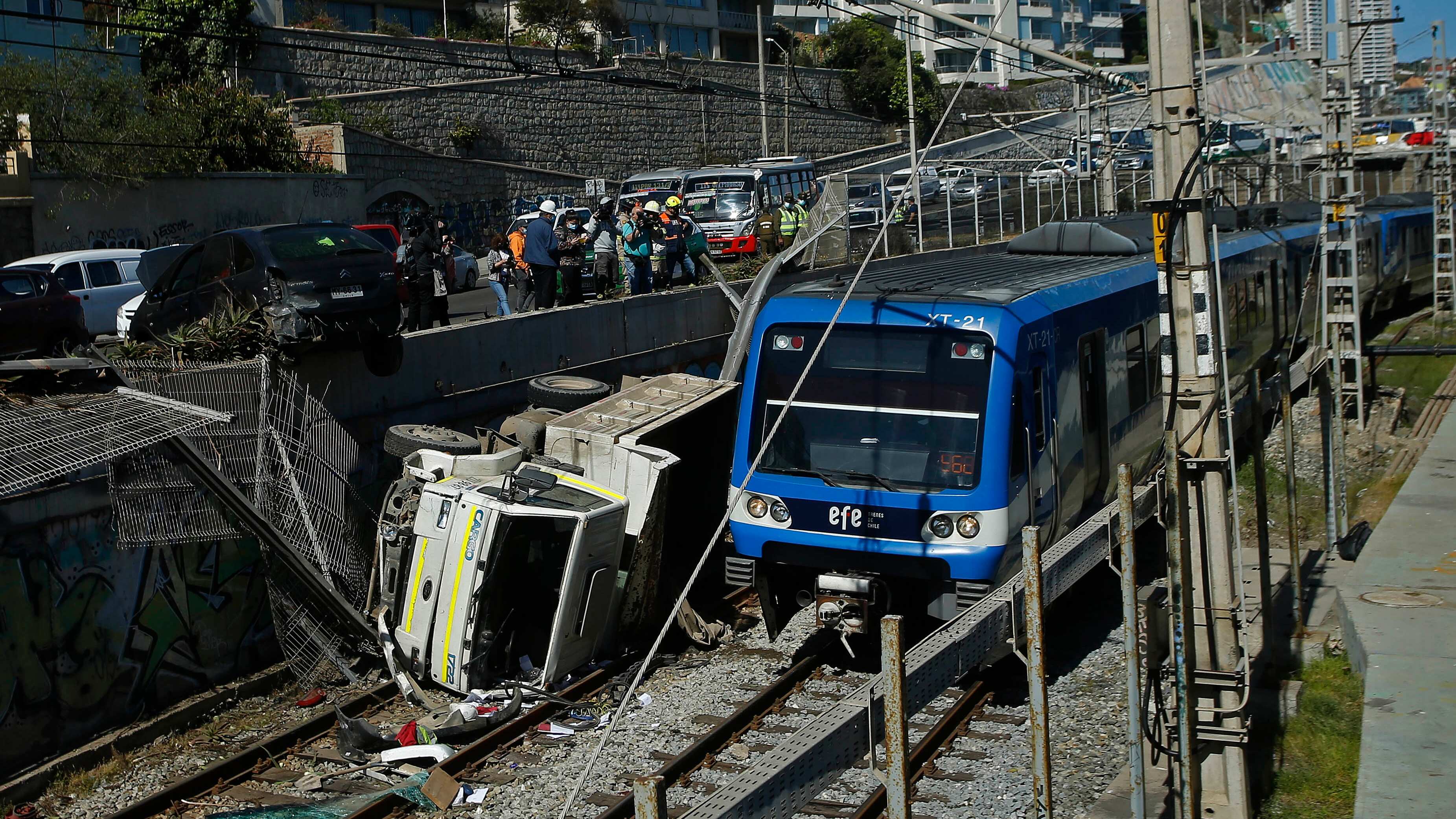 El chofer del camión fue trasladado hasta el Hospital de Valparaíso, donde se informó que está fuera de riesgo vital. Mientras, personal de la Empresa de Ferrocarriles Valparaíso (EFE) y Bomberos trabajaron en la zona para retirar el vehículo.