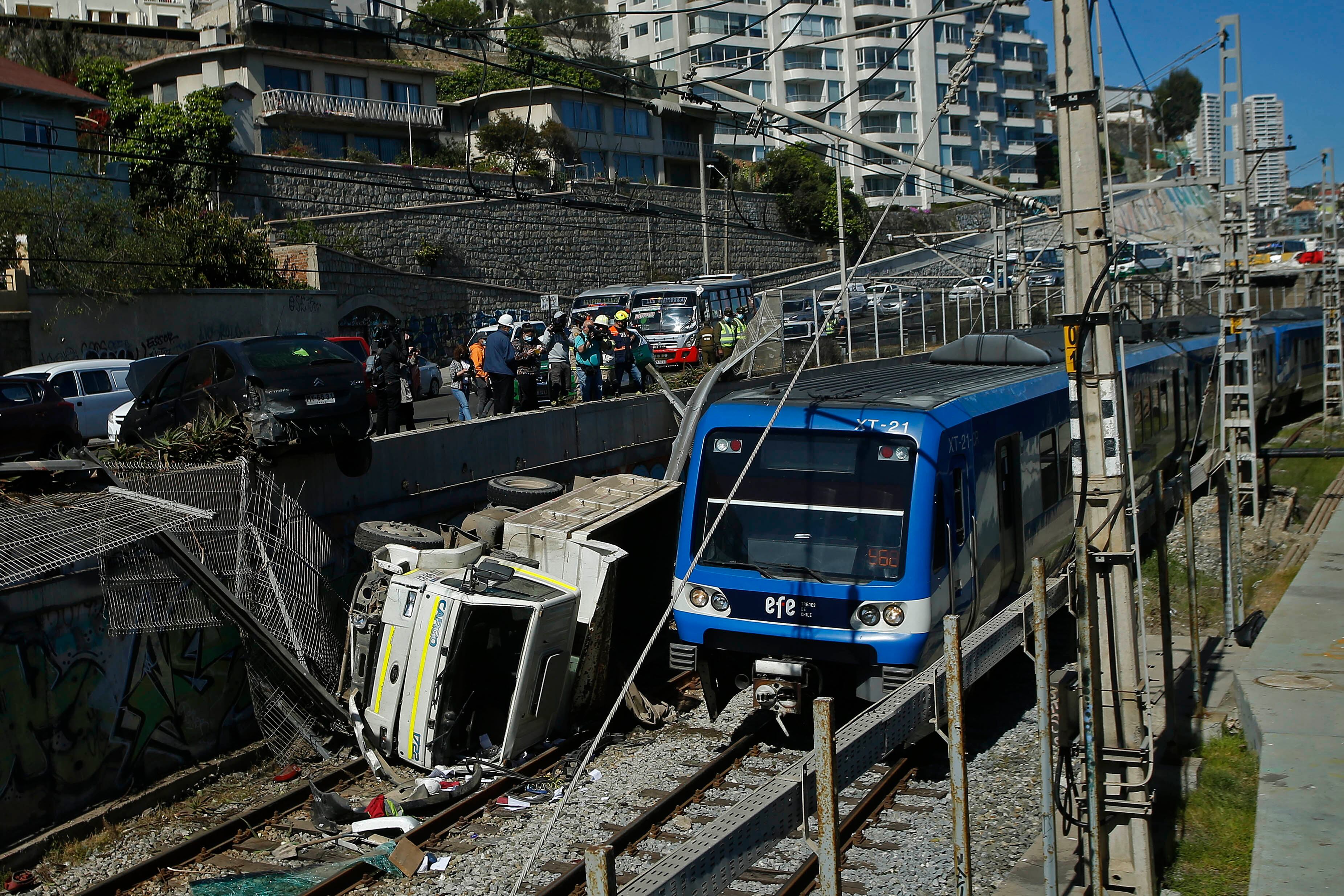 El chofer del camión fue trasladado hasta el Hospital de Valparaíso, donde se informó que está fuera de riesgo vital. Mientras, personal de la Empresa de Ferrocarriles Valparaíso (EFE) y Bomberos trabajaron en la zona para retirar el vehículo.