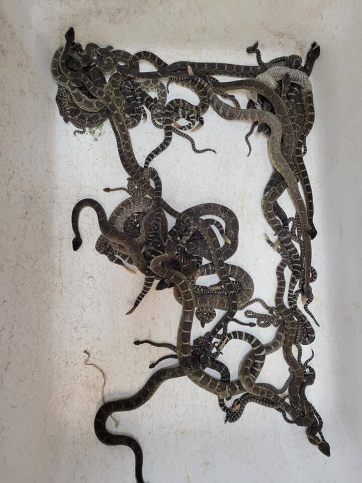 El director del rescate, Alan Wolf, señaló en una publicación de Facebook que “la semana pasada recibí la llamada de una señora que dijo que tenía serpientes debajo de su casa”.