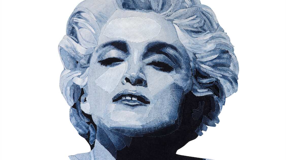 El artista británico Ian Berry, que lleva más de 15 años haciendo arte con mezclilla o denim, decidió crear la serie ‘Denim Legends’ para rendir homenaje a personajes famosos de la cultura pop que popularizaron este material.