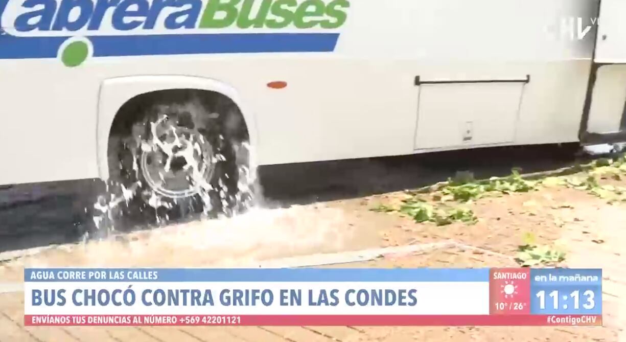 Pero además el bus quedó sobre un grifo, que tiene corriendo el agua por el sector, además de una baja de presión en los inmuebles del sector.