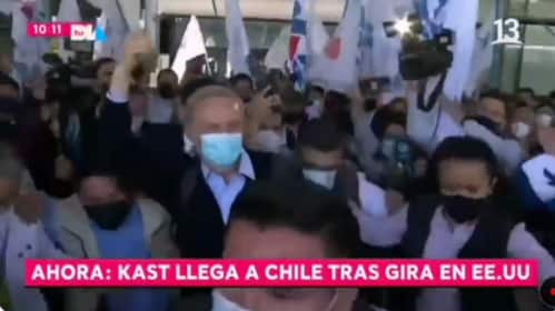 Una caótica llegada protagonizó el candidato presidencial del Frente Social Cristiano, José Antonio Kast, quien durante la mañana de este jueves retornó al país tras una breve gira en Estados Unidos.