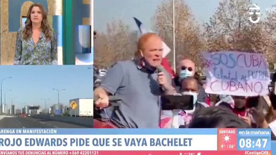 Lucho Ugalde estaba comentando le llegada de la exPresidenta Michelle Bachelet, desde la carretera, cuando de pronto una patrulla retrocedió y pasó a llevar al camarógrafo, quien resultó ileso.