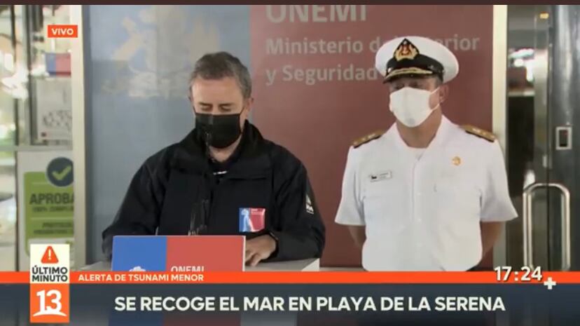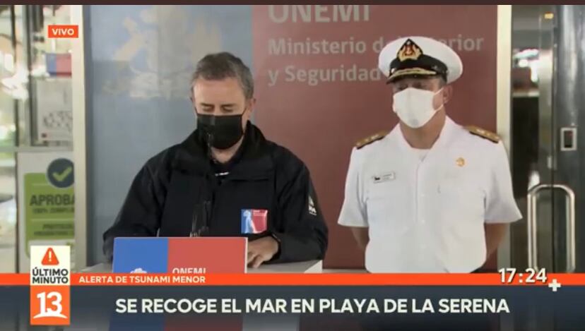 La Oficina Nacional de Emergencia confirmó que elevan alerta para la región de Coquimbo, Los Ríos y Los Lagos en donde se debe evacuar a una zona segura sobre la cota 30.