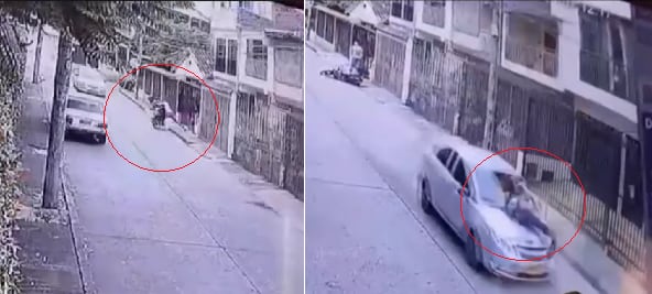 En un video captado por una cámara de seguridad quedó el instante en el que un vehículo atropella a un presunto ladrón, cuando la víctima para defenderse lo empujó hacia la calle.