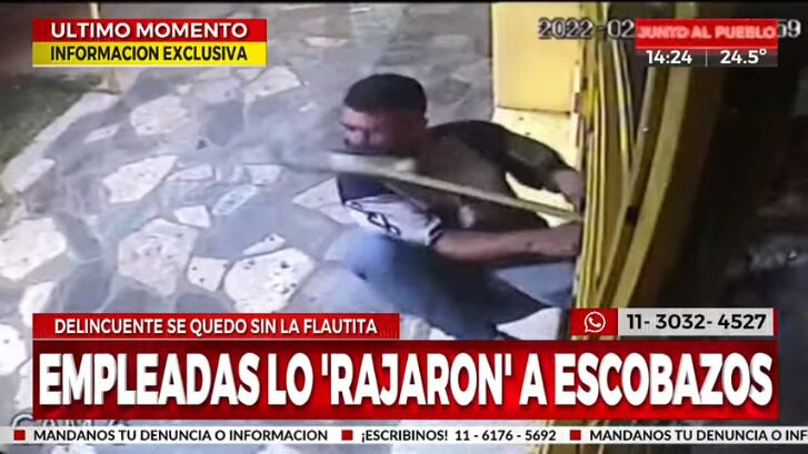 Tal fue la magnitud y cantidad de “escobazos” que el artículo de limpieza terminó destrozado y a la vez, el ladrón salió corriendo, frustrando su intento por robar el local.