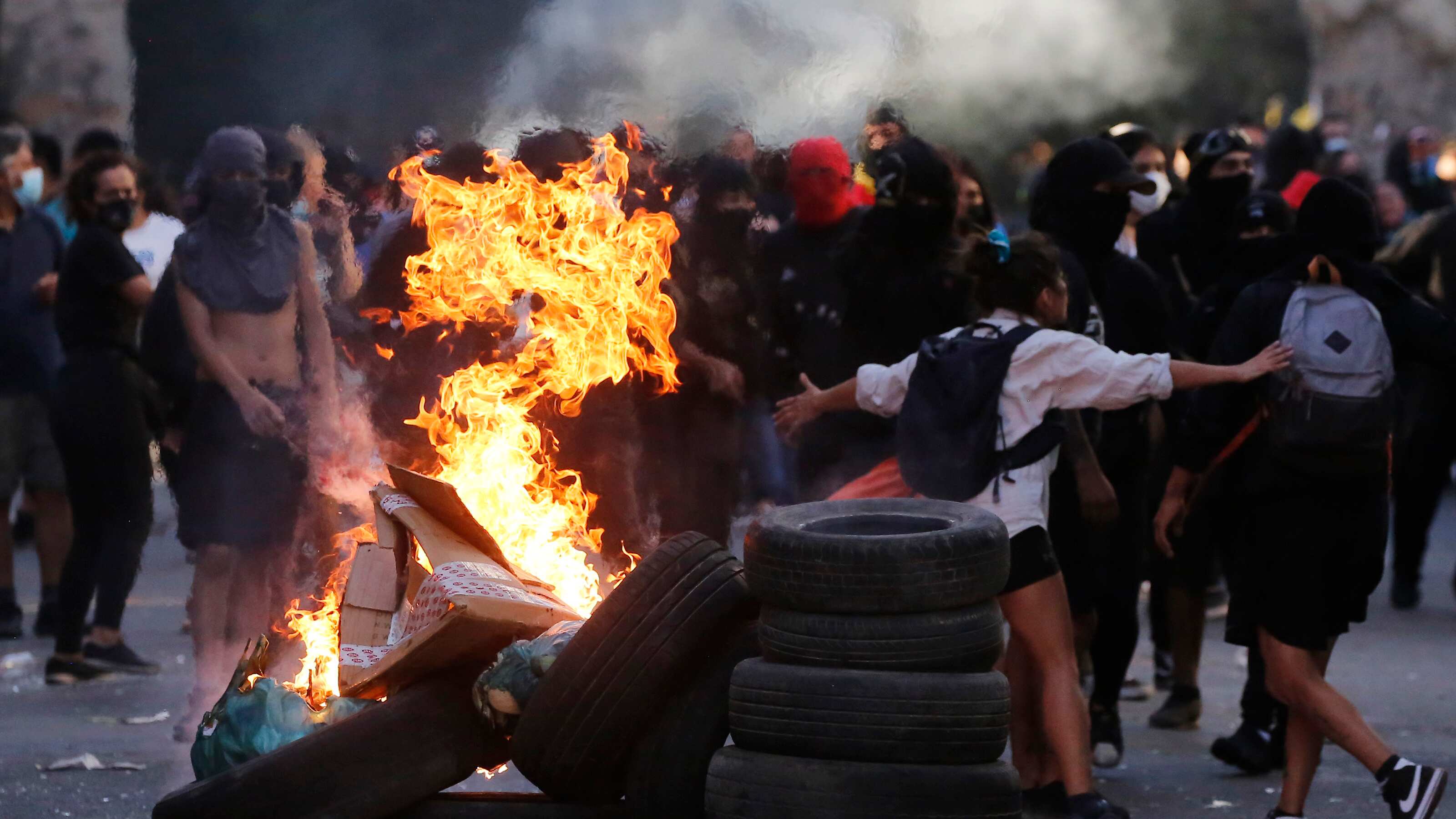 Los encapuchados intentaron prender barricadas, sin embargo, el mar humano femenino lo impidió. Mujeres comenzaron a increparlos y a pedirles que se retiraran.