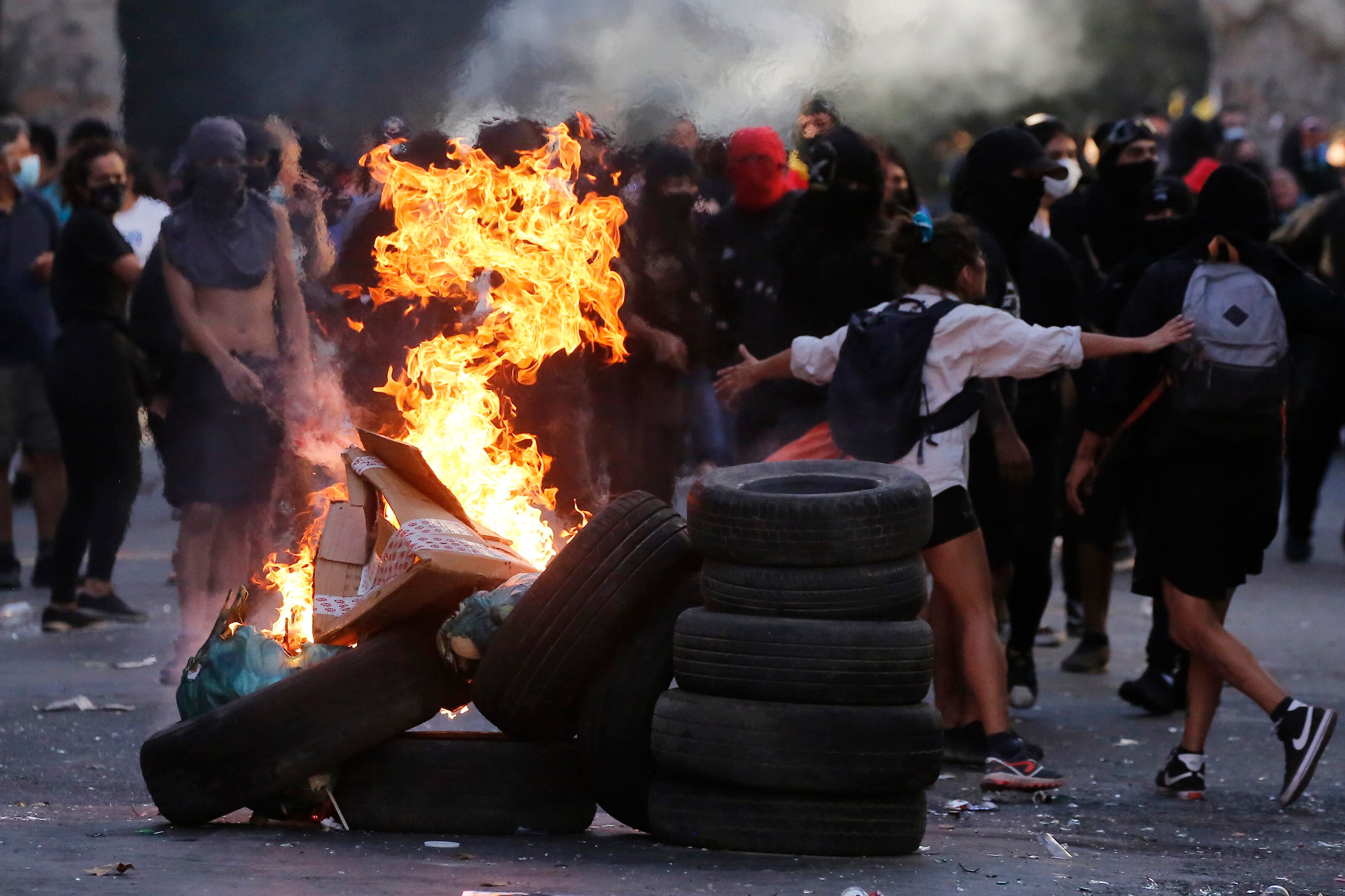 Los encapuchados intentaron prender barricadas, sin embargo, el mar humano femenino lo impidió. Mujeres comenzaron a increparlos y a pedirles que se retiraran.
