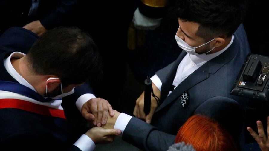 Y durante la ceremonia, que estuvo marcada por la emoción del recién asumido Mandatarios, sus invitados especiales fueron protagonistas, entre ellos, Gustavo Gatica, joven que fue víctima de trauma ocular durante el estallido social.