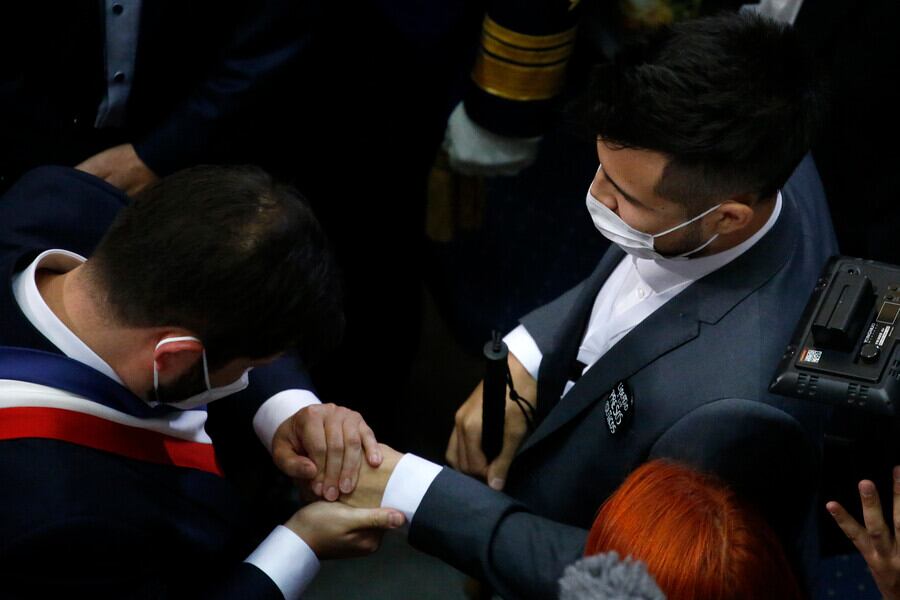 Y durante la ceremonia, que estuvo marcada por la emoción del recién asumido Mandatarios, sus invitados especiales fueron protagonistas, entre ellos, Gustavo Gatica, joven que fue víctima de trauma ocular durante el estallido social.