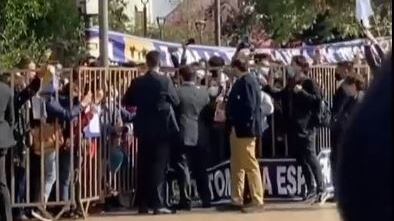 El objeto no llegó directamente al jefe de Estado, sino que a uno de sus acompañantes. En primera instancia, se pensó que el proyectil había impactado en uno de sus escoltas, sin embargo, la piedra le llegó al pecho a su jefe de Gabinete.