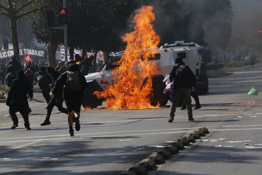 Varios incidentes graves se están produciendo este domingo en la Alameda, en el marco de una contra marcha convocada por agrupaciones sociales y de trabajadores ajenas a la Central Unitaria de Trabajadores (CUT).