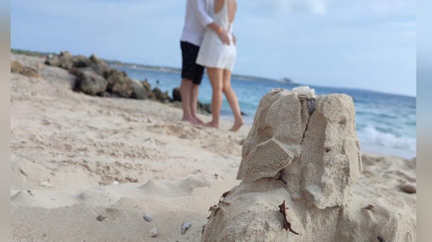 “El mejor regalo de boda es... la vida acercándote al testimonio más lindo de amor”, escribió la periodista. Acompañó el mensaje una fotografía en la playa, en la que en el primer plano se ven unos zapatos rojos de bebé y en el segundo la pareja vestida de blanco en un abrazo afectuoso con el mar azul de fondo.