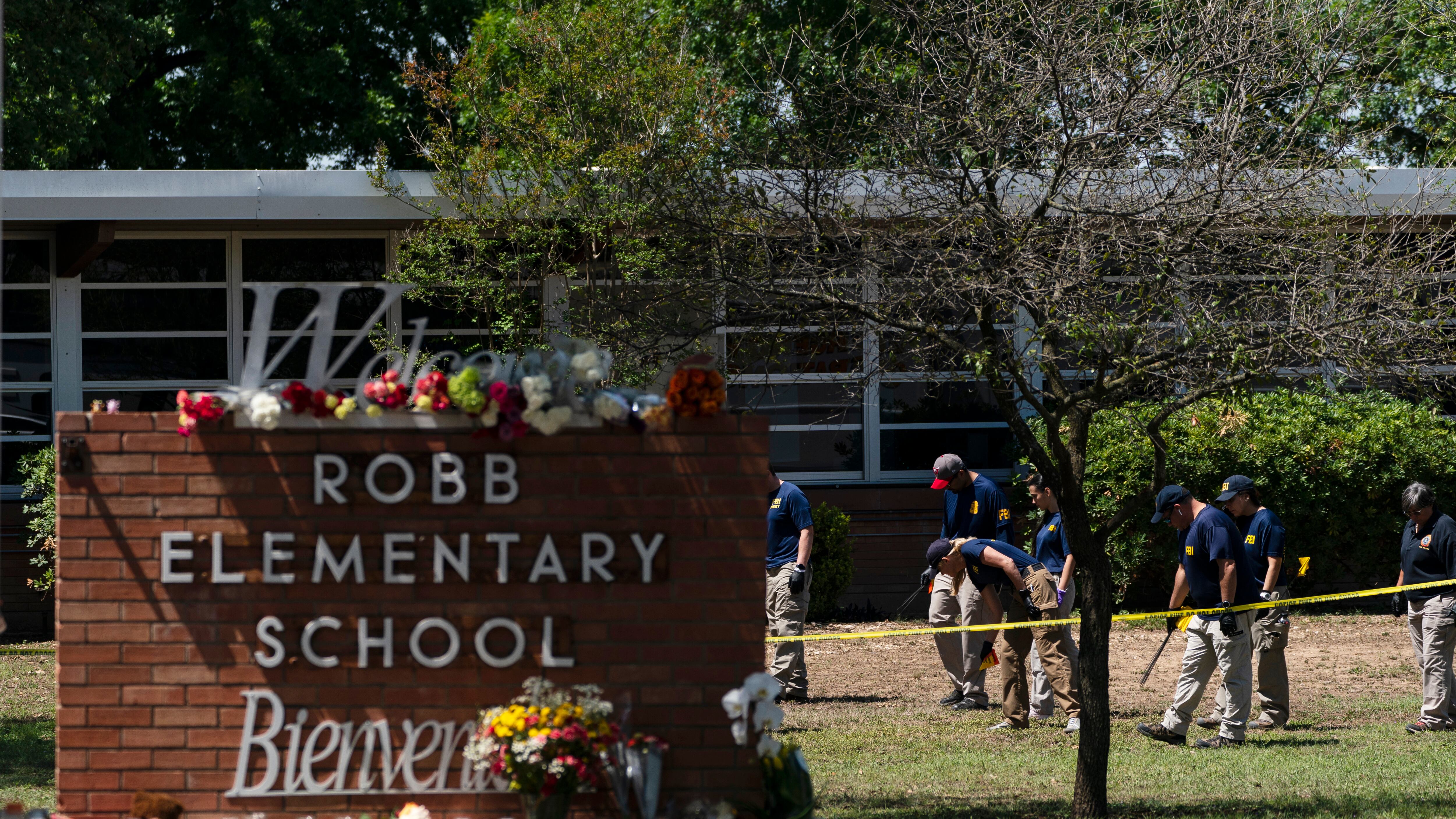 Investigadores buscan evidencia afuera de la escuela primaria Robb, en Uvalde, Texas, el miércoles 25 de mayo de 2022. (AP Foto/Jae C. Hong) AP (Jae C. Hong/AP)