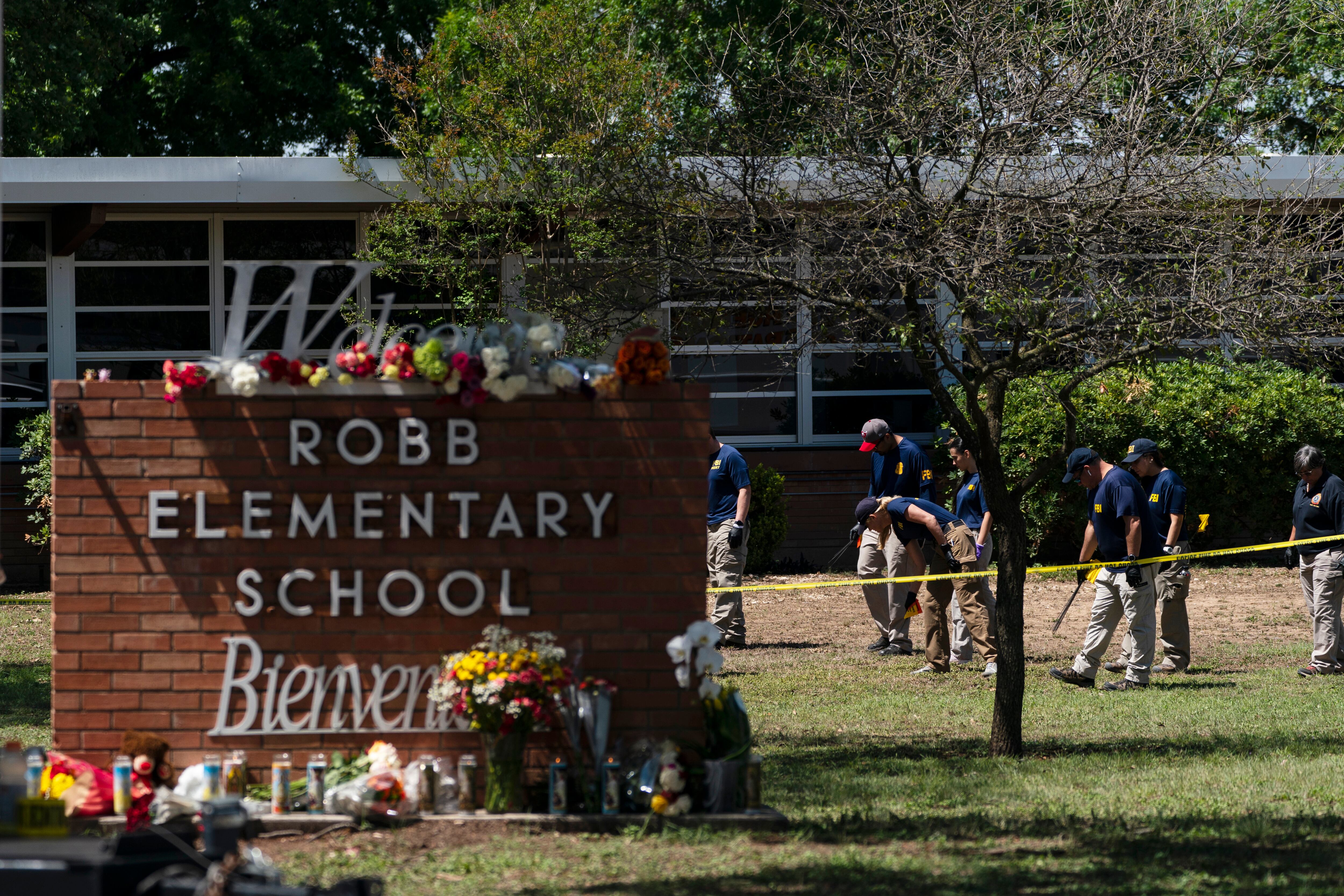 Investigadores buscan evidencia afuera de la escuela primaria Robb, en Uvalde, Texas, el miércoles 25 de mayo de 2022. (AP Foto/Jae C. Hong) AP (Jae C. Hong/AP)