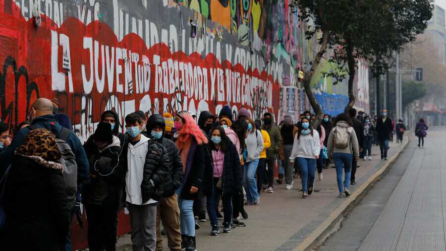 Es el caso del centro de vacunación instalado en el centro cultural GAM, en Alameda 227, en la comuna de Santiago, donde se ha formado una extensa fila que está dando vuelta la cuadra por calle Namur.