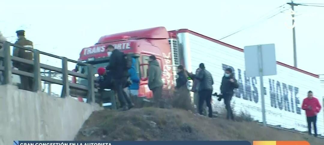 Producto del intento de encerrona se generó un taco de proporciones al quedar una de las vías inhabilitada.