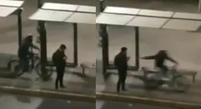 “Estaba mirando mi teléfono, veo al extranjero en bicicleta, no le di importancia, fue sorpresivo, no esperé que me tomara por sorpresa”, señaló el afectado a Canal 13.