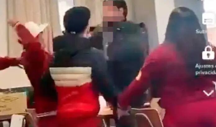 La discusión fue subiendo de temperatura y se unió otro joven en defensa de su compañero y comenzaron a golpear al adulto, en presencia de los demás integrantes del curso que estaban en la sala de clases y gritaban, intentando separarlos.
