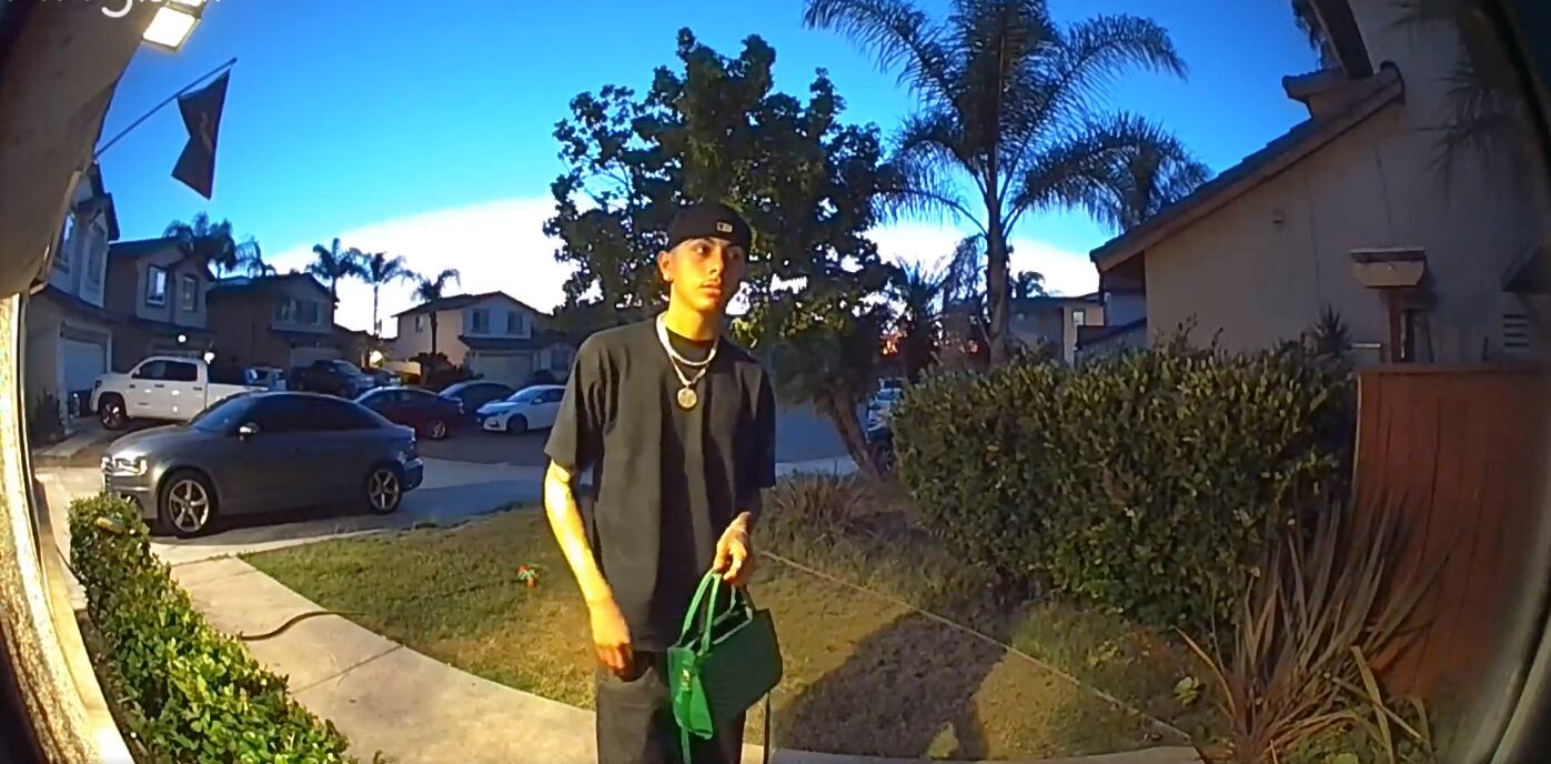 Se trata de Adrián Rodríguez, egresado de la Preparatoria Otay Ranch, quien fue captado por el video de la cámara de seguridad, mientras se dirigía a la puerta de la casa para entregar una bolsa verde, que encontró en un tienda.