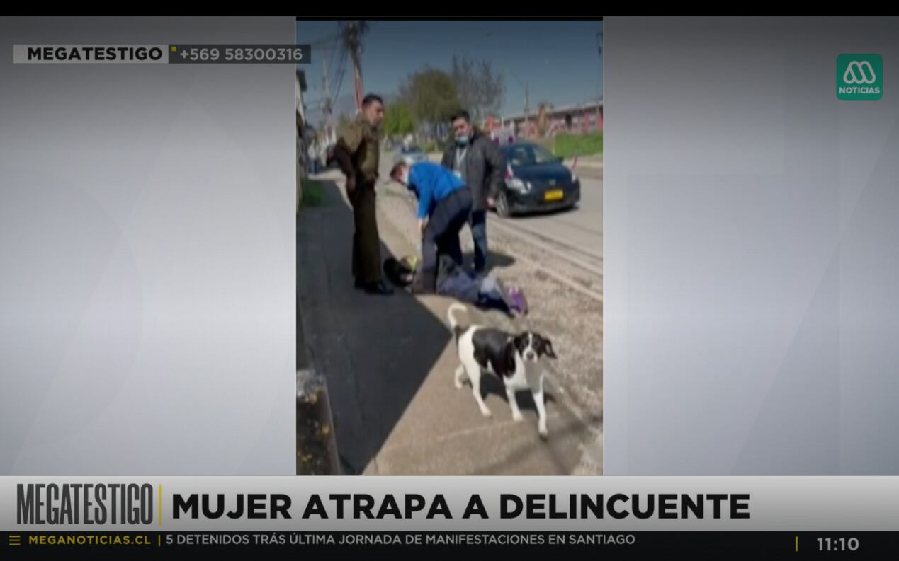 “Trató de esquivarme (el delincuente) y lo único que hice, con mi mano derecha, lo tomé de la polera, lo di vuelta y cayó al suelo”, le contó la mujer a Mega.