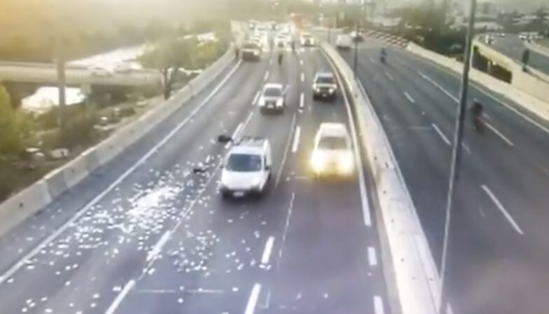 La tarde de este jueves una dantesca imagen quedó registrada en Pudahuel, cuando un grupo de delincuentes huía de Carabineros y en medio de este escape en la Costanera Norte, lanzaron el dinero robado a un local comercial, en plena autopista.