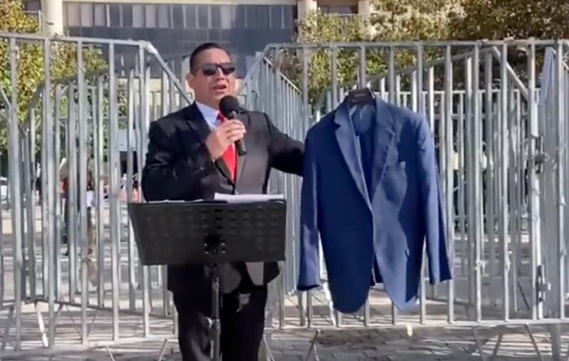 La primera parlamentaria trans chilena entonces ya había sido objeto de la violencia de Soto, que este miércoles regresó al frontis de la sede legislativa, pero ahora le llevó un terno de regalo.