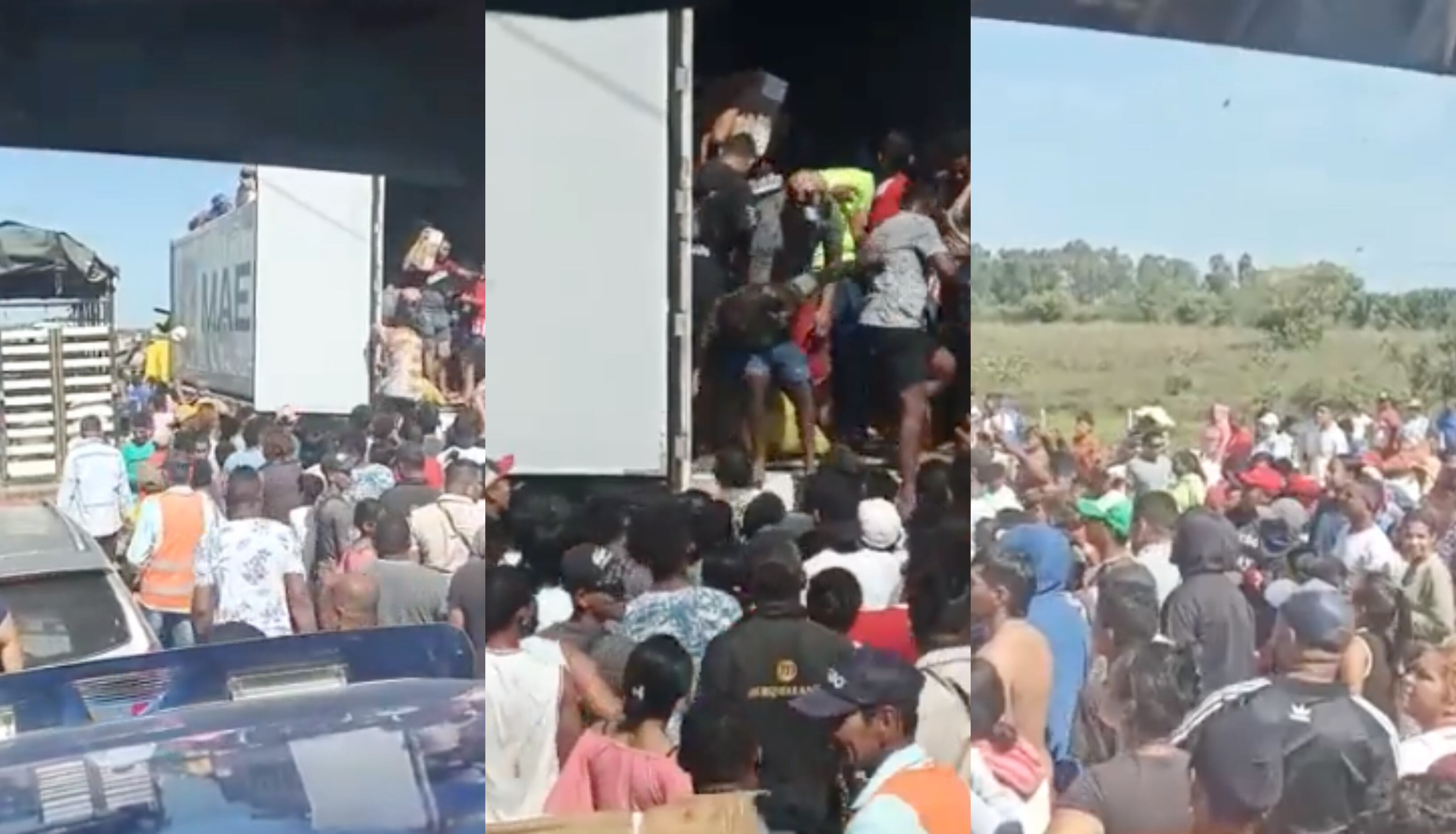 Además, informaron que el accidente fue causado por el choque de dos camiones. El otro vehículo involucrado transportaba purina, pero los saqueadores se concentraron llevarse toda la carne.