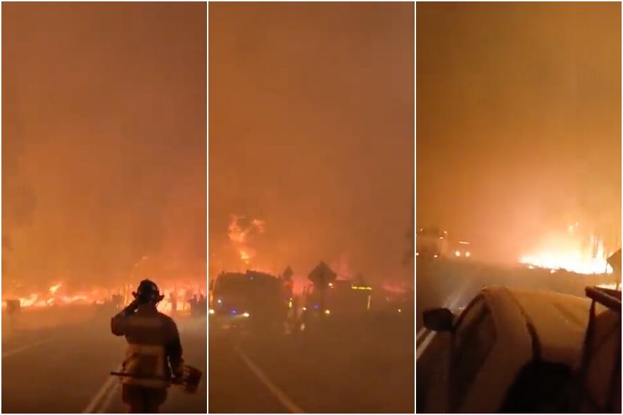 “El fuego se descontroló… ¡Hay que rajar de aquí!”, “¡Salgan mierda! ¡Vámonos, cabros! ¡Vamos no más!”, son algunos gritos desesperados que se escuchan en los citados registros sobre el siniestro que azota a la comuna de la Octava Región.