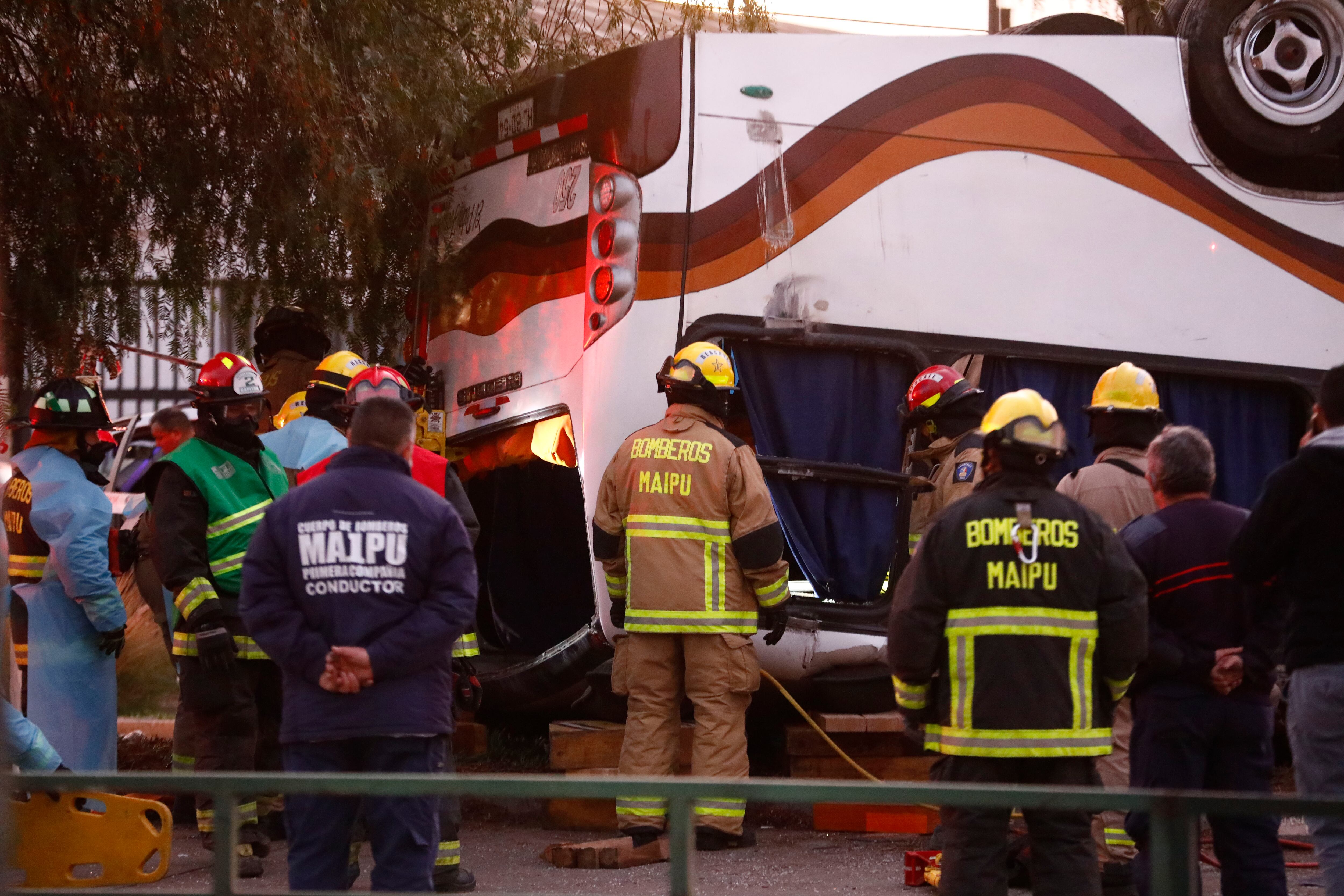 Alrededor de las 17.30 horas de este martes el conductor perdió el control del vehículo de la empresa Eme Bus de dos pisos, provocando que se volcara con los 57 pasajeros que transportaba, quienes se dirigían a Santiago, Valparaíso y Viña del Mar tras salir de Los Ángeles, Región del Biobío.