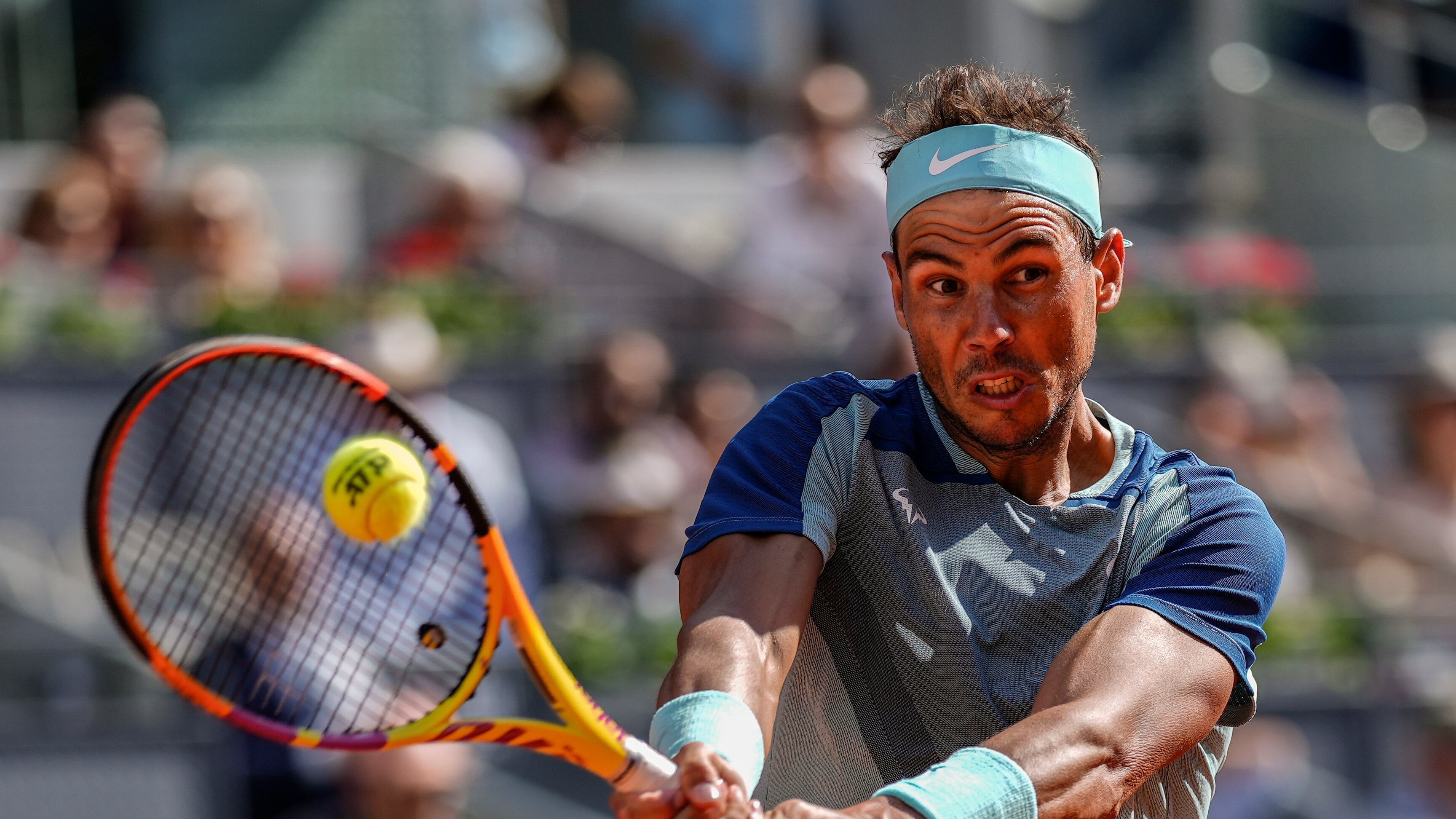 En esta imagen de archivo, Rafael Nadal devuelve ante David Goffin durante un partido en el Abierto de Madrid, en Madrid, el 5 de mayo de 2022. (AP Foto/Manu Fernández, archivo) AP (Manu Fernandez/AP)