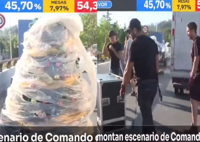 Todo quedó en evidencia cuando un periodista de TVN reporteaba en terreno el motivo de la tremenda instalación, descubriendo que pertenecía a los adherentes de la opción perdedora.