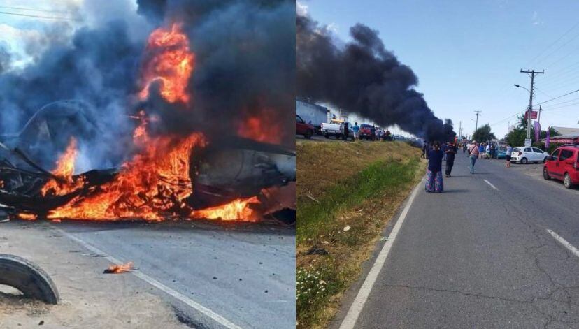 “La avioneta capotó sobre la Ruta 5 Sur e impactando un vehículo menor, incendiándose la aeronave en el lugar, lo que habría provocado la muerte del piloto y tres lesionados”, señalaron desde la institución.