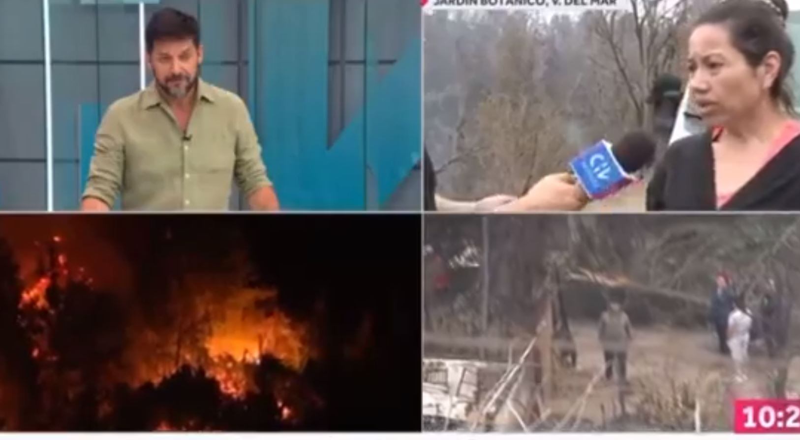 Fue cuando un periodista en terreno realizaba un despacho junto a la mujer, desde el Jardín Botánico de Viña del Mar que quedó totalmente destruido por llamas, momento donde Cavada solicitó que no la grabarán puesto que se encontraba llorando debido a la tragedia.