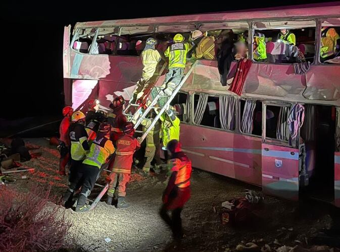 “Al menos 40 lesionados y un fallecido es el saldo preliminar de un accidente ocurrido esta noche en la ruta 27 CH entre Paso Jama y San Pedro de Atacama, Región de #Antofagasta, donde volcó un bus proveniente de Argentina con turistas brasileños”, fue la primera información que se entregó,