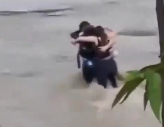 Y es lo que se ve en el video, donde los tres amigos decidieron fundirse en un abrazo mientras esperaban la ayuda y el agua les subía hasta las rodillas para tratar de hacer frente a la fuerza del río. Sin embargo, no pudieron alcanzar la cuerda y cada uno fue tomado por la corriente del agua.