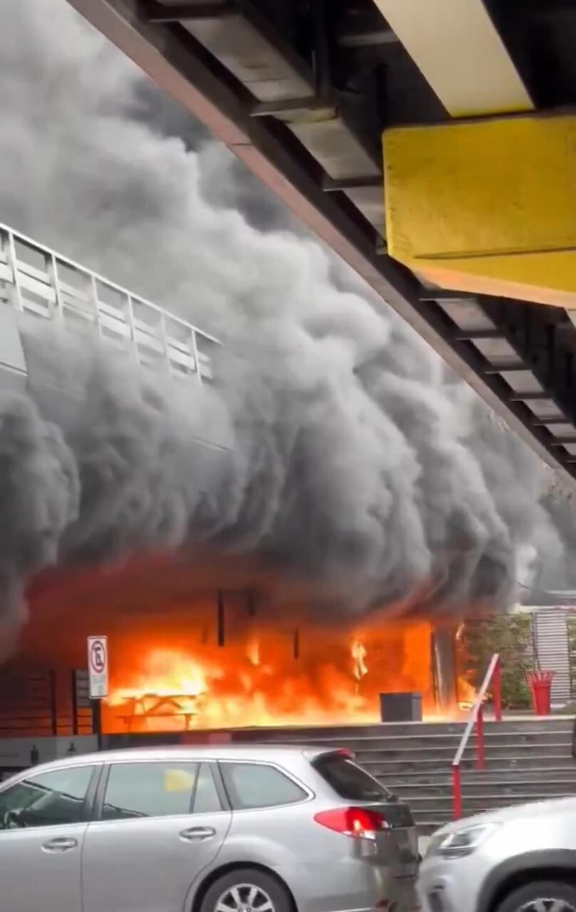 Un feroz incendio se registró en horas de la tarde a la salida de la estación Escuela Militar, correspondiente a la Línea 1 del Metro, en la comuna de Las Condes.